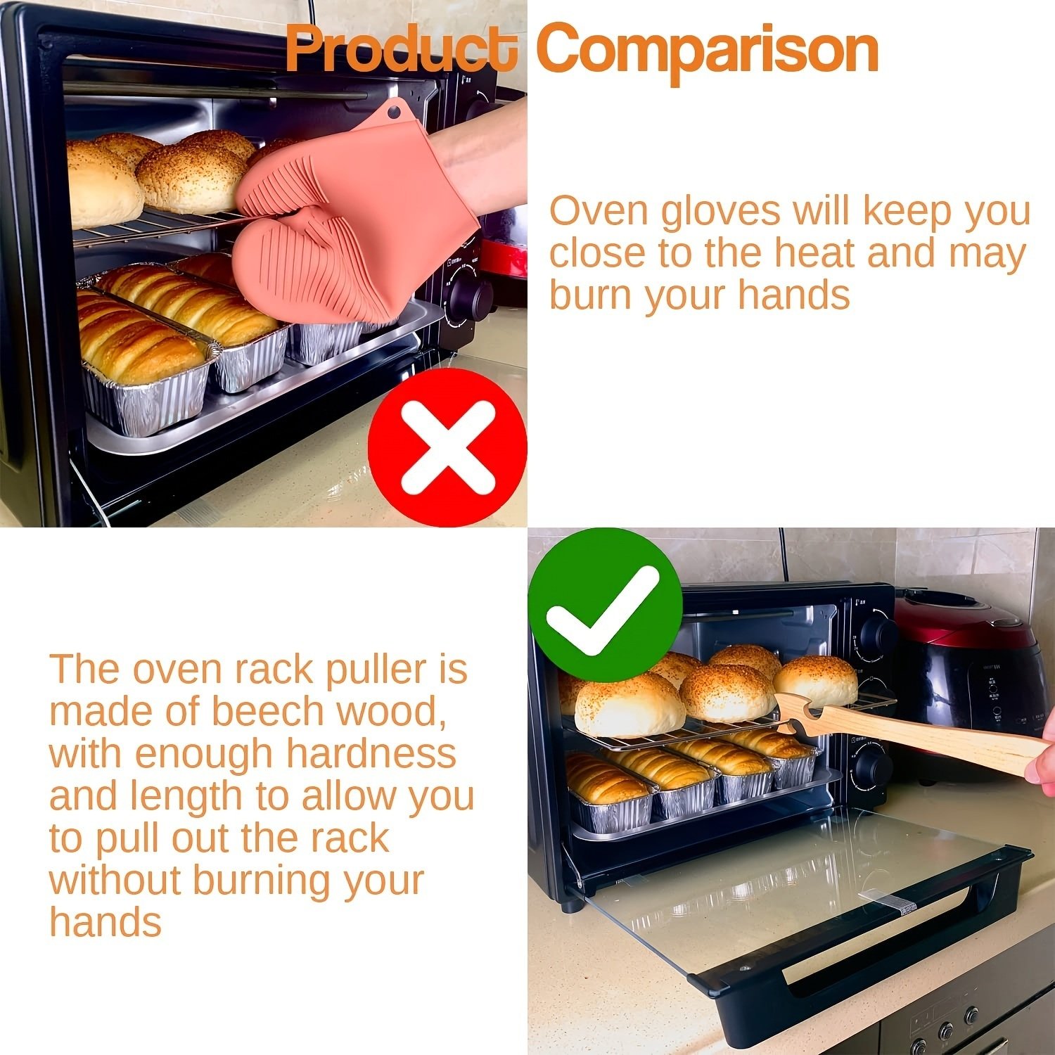 1 Pack; Wooden Oven Rack Push Pull Stick; For Oven Rack Push Pull Puller For Baking; Cooking And Grilling By Beech Wood; Kitchen Accessories