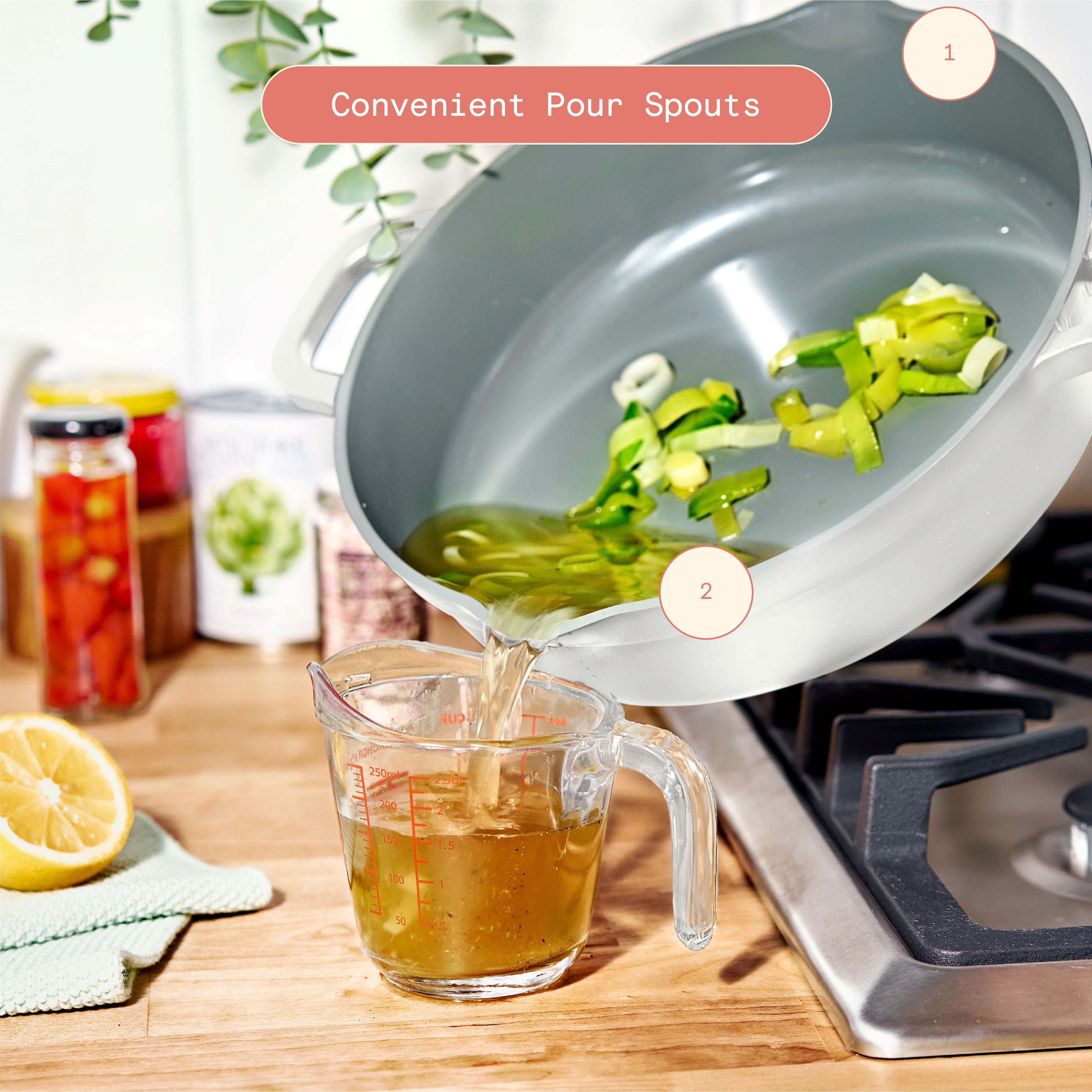 Elevate your everyday meals with the 4qt Cast Aluminum Non-Stick Hero Pan, the perfect one pot solution for any kitchen. Boil, Strain, Sauté, Simmer, Pan Fry, Sear, Braise, Steam, Stir Fry, and Serve. The Hero Pan is your versatile all-in-one cooking solution that empowers you to be the hero of your kitchen. The ceramic non-stick coating is PTFE, PFOA & PFOS free, making clean-up a breeze. With its lightweight design and convenient pour spouts, this pan is ideal for easy maneuvering. From stovetop to tabletop, simplify your cooking process and impress your guests with delicious meals cooked in just one pan..