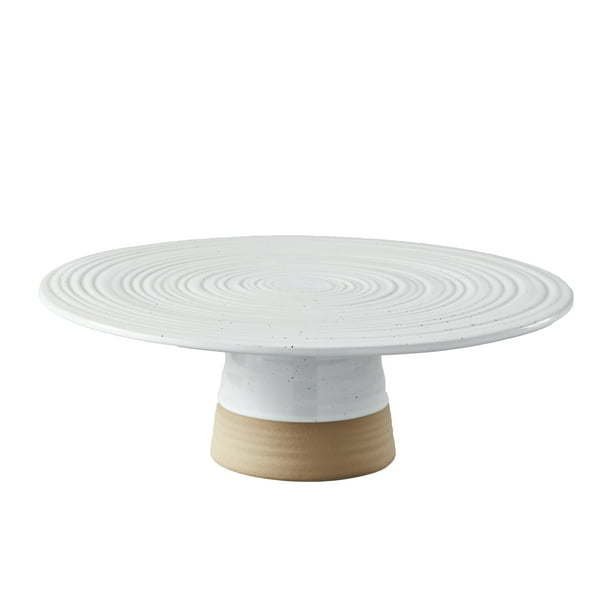 Add modern elegance and a bit of rustic charm to your dessert game with the Better Homes & Gardens Abbott Exposed Clay Stoneware Pedestal Cake Stand, White Speckled. This round, durable, stoneware cake stand features an artisanal style, with a textured groove pattern. Delicate speckles on a glazed, white finish contrast the exposed, matte clay bottom. The pedestal cake stand makes a great dessert showcase with its contemporary design and neutral tones that complement most home décor styles, dinnerware, and cutlery pieces. This sturdy, stoneware cake stand weighs 3.53 pounds. For best results, hand wash only. Perfect for showcasing cakes, cupcakes, pies, tarts, and more, the Better Homes & Gardens Abbott Exposed Clay Stoneware Pedestal Cake Stand makes a great addition to any kitchen.