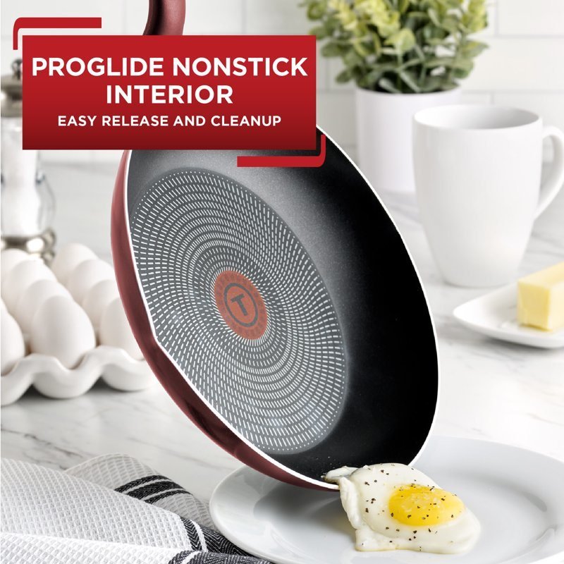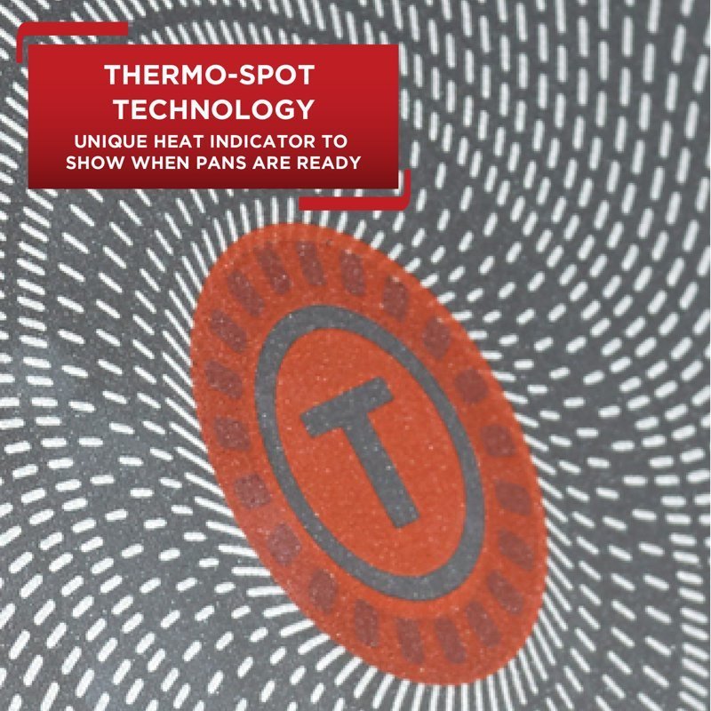 PROGLIDE NONSTICK COOKWARE INTERIOR: Easy release and cleanup every timeTHERMO-SPOT TECHNOLOGY: Unique heat indicator that turns solid red to show when pots and pans are properly preheated to start cookingEVEN HEAT BASE: No hot spots for reliable cooking resultsCOMFORTABLE HANDLES: Sturdy and secure gripPOURING SPOUTS: Extra convenience in the kitchenMEASURING MARKS: Helps save timeVENTED TEMPERED GLASS LIDS: Maintain visibility while trapping heat and moistureDISHWASHER AND OVEN SAFE: Up to 350°FALL COOK TOPS COMPATIBILITY: Excluding InductionLIFETIME LIMITED GUARANTEE