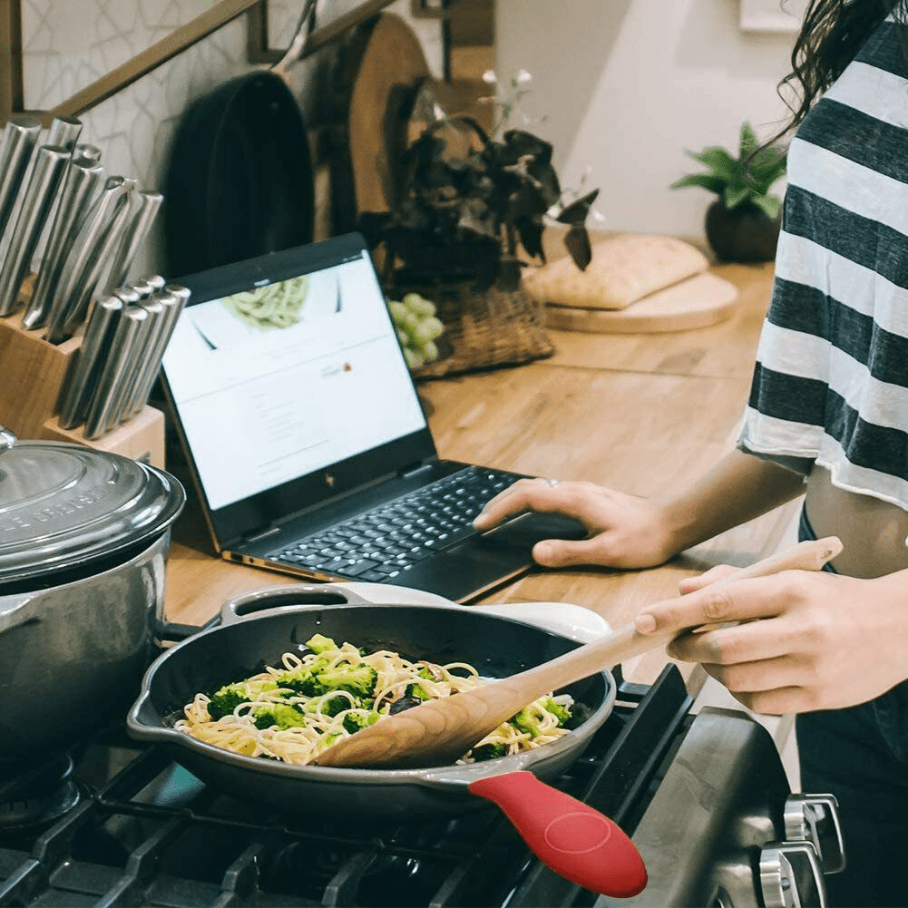 Home > Potholder Cast Iron Skillet Handle Cover Silicone Hot Handle Holder Pot Sleeve 2 Pack
