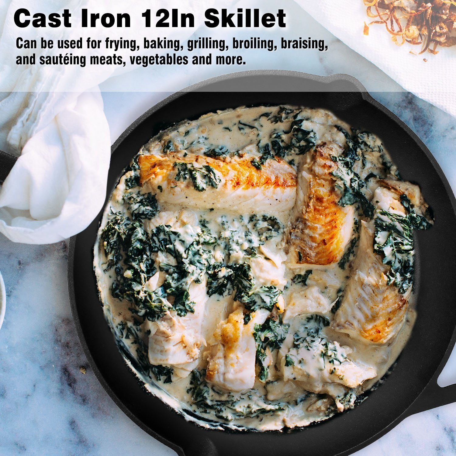 Home > Pre-Seasoned Cast Iron Skillet Oven Safe Cookware Heat-Resistant Holder 12inch Large Frying Pan