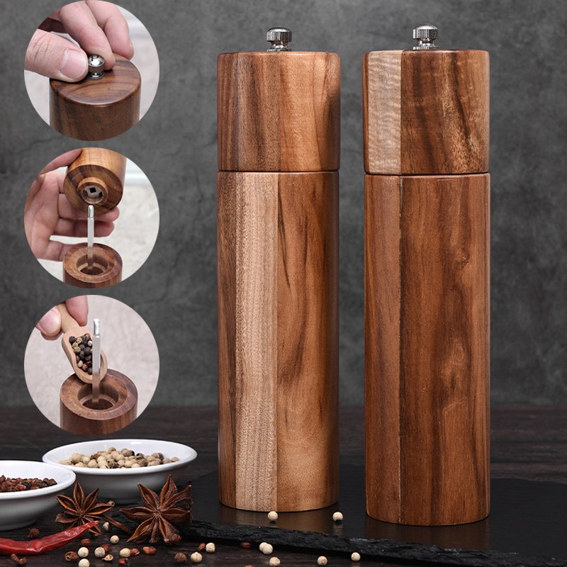 Feature:THE PERFECT ADDITION TO DINNER : As anyone with a passion for cooking and great food can attest; presentation is just as important as the food itself. With the LEESEPH salt and pepper grinder; add sophistication; convenience; and high-functionality to any meal or dinner party.FRESH SEASONING ; EVERYTIME: Salt and pepper mills are largely preferred over traditional shakers because the salt crystals and pepper corn are ground on command; so you are getting the freshest seasoning available; ensuring better tasting food. Even kids; elderly; or people with arthritis or dexterity issues can easily operate these mills.LOW-MAINTENANCE : Our large wooden mills require very little maintenance; so you can focus on more important things. Each salt and pepper grinder can house a significant amount of granules so you won't be constantly refilling them. To fill your grinders; simply unscrew the metal top and remove the wood cover; then fill with your favorite sea; himalayan; celtic salt or black pepper corn. Clean by using a damp cloth or brush.TOP-NOTCH CRAFTSMANSHIP: Our pepper mill grinder and sea salt grinder comprises of acacia wood; naturally creating that desired grain finish that makes this set so exquisite looking. Aside from its beauty; acacia wood is an ideal material because it is incredibly durable and naturally water-resistant; which means it safeguards your salt and pepper from collecting moisture . Built with high-quality stainless steel and ceramic; these containers guarantee flawless performance for years to come.THE PERFECT GIFT: Our decorative salt and pepper shakers perfectly blend elegant workmanship with high-performance ; perfect for a wedding; anniversary; birthday; housewarming; or a holiday like Christmas or Valentine's DaySpecification:Material: Acacia Wood+Ceramic+Stainless Steel+AluminumSize: 5.5 cm in diameter * 21.5 cm in heightPackage inluded:1pcs Grinder